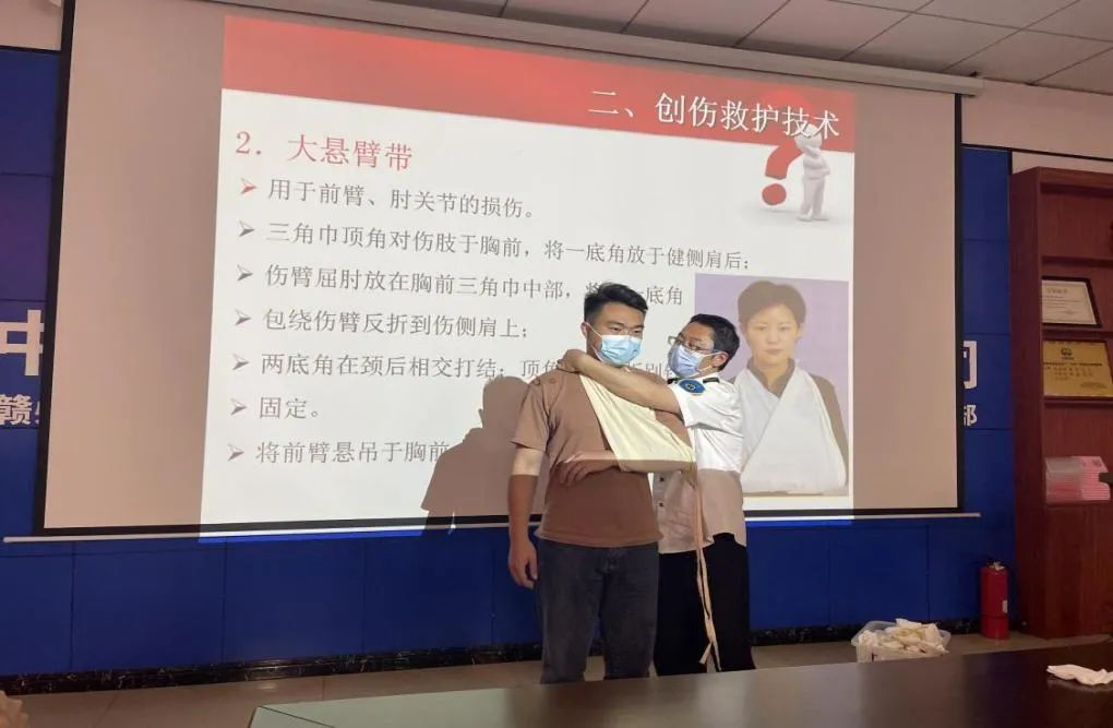 在應(yīng)急救護(hù)知識(shí)培訓(xùn)階段,贛州市急救中心醫(yī)務(wù)人員對(duì)應(yīng)急救護(hù)知識(shí)進(jìn)行現(xiàn)場(chǎng)授課,重點(diǎn)對(duì)止血包扎、海姆立克急救法進(jìn)行實(shí)操演練,大家現(xiàn)場(chǎng)學(xué)習(xí)了如何利用生活中隨處可見的物品對(duì)較小創(chuàng)傷進(jìn)行自救的方法。