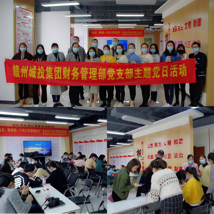 為推進黨建工作與財務(wù)管理工作深度融合,解決2020年集團員工在個人所得稅匯算清繳中遇到的困難,4月24日,贛州城投集團財務(wù)管理部黨支部組織支部黨員及入黨申請人在集團13樓黨性教育體驗室,開展了“送服務(wù),解難題”主題黨日活動,邀請了集團各部門、子公司員工代表參加活動。