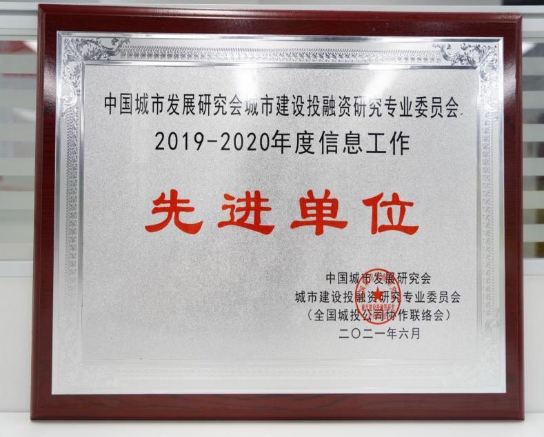 全國(guó)城投協(xié)會(huì)“2019-2020年度信息工作先進(jìn)單位”