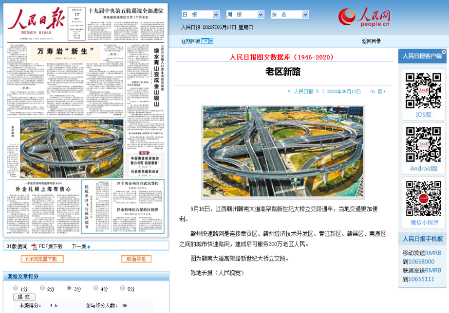 贛南大道高架路新世紀(jì)大橋立交段通車。