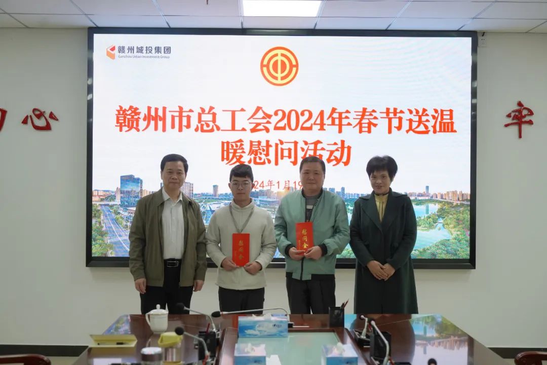 1月19日,贛州市總工會黨組成員、副主席徐雅靜一行到贛州城投集團開展春節(jié)送溫暖慰問活動,走訪慰問困難職工,并致以新春美好祝福。集團黨委副書記王遠平,集團黨群工作部、文化宣傳部負責人參加慰問。