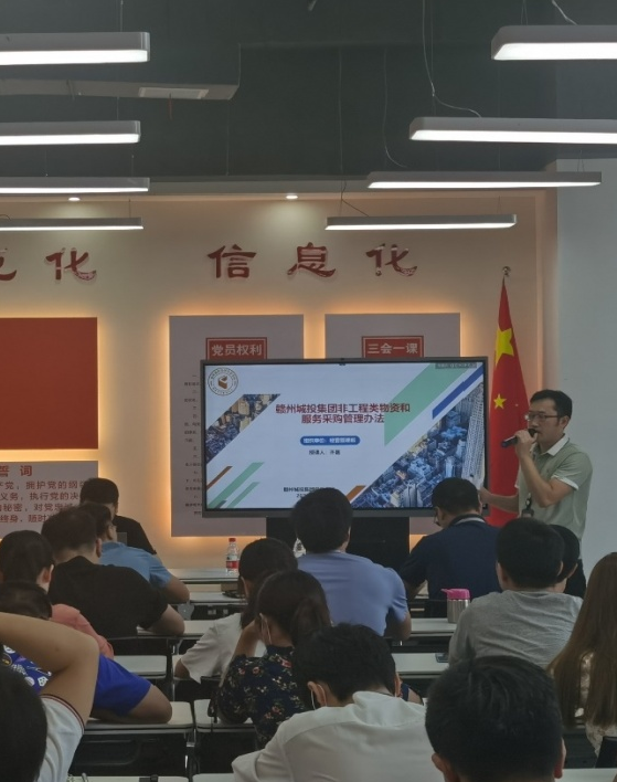 本次培訓(xùn)共分兩方面內(nèi)容:一是對《贛州城市投資控股集團(tuán)有限責(zé)任公司非工程類物資和服務(wù)采購管理辦法》、《贛州城市投資控股集團(tuán)有限責(zé)任公司非工程類物資和服務(wù)采購管理辦法》、《贛州城市投資控股集團(tuán)有限責(zé)任公司網(wǎng)絡(luò)安全事件應(yīng)急預(yù)案(試行)》及《贛州城市投資控股集團(tuán)有限責(zé)任公司資產(chǎn)租賃管理辦法》三個制度進(jìn)行了宣貫;二是特別邀請了中咨江西工程有限公司投資經(jīng)理盧凱對投后管理進(jìn)行專題培訓(xùn)授課,主要針對投資監(jiān)管的三道防線、投資項目投前決策階段及實施階段所包含的工作內(nèi)容、投資項目風(fēng)險研判以及應(yīng)對措施、投資項目實施后的效果和效益分析方法進(jìn)行了全面深入講解。