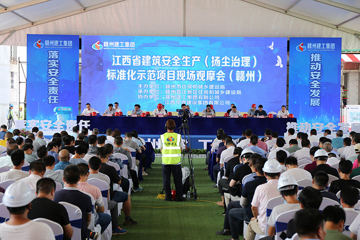 日前,2021年江西省建筑施工安全生產(chǎn)(揚(yáng)塵治理)標(biāo)準(zhǔn)化示范項(xiàng)目現(xiàn)場(chǎng)觀摩會(huì)(贛州)在贛州城投集團(tuán)星洲萃苑(一期)項(xiàng)目工地成功舉辦,會(huì)議主題為“落實(shí)安全責(zé)任,推動(dòng)安全發(fā)展”。市住建局、市應(yīng)急局、蓉江新區(qū)管委會(huì)、贛州城投集團(tuán)有關(guān)領(lǐng)導(dǎo),以及來自各縣(市、區(qū))住建主管部門分管領(lǐng)導(dǎo)和安全監(jiān)督機(jī)構(gòu)負(fù)責(zé)人,市本級(jí)在建項(xiàng)目企業(yè)代表,新聞媒體記者等共計(jì)200余人走進(jìn)項(xiàng)目施工現(xiàn)場(chǎng),重點(diǎn)對(duì)星洲萃苑(一期)項(xiàng)目建筑施工安全生產(chǎn)標(biāo)準(zhǔn)化、綠色文明施工、智慧工地管理等方面進(jìn)行了全方位的觀摩學(xué)習(xí)。