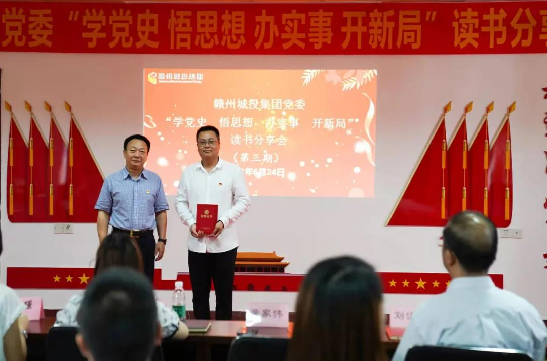 蟬鳴荷香六月天,黨史學(xué)習(xí)正當(dāng)時(shí)。為推動(dòng)黨史學(xué)習(xí)教育走深走實(shí), 日前,贛州城投集團(tuán)黨委舉辦第三期“學(xué)黨史 悟思想 辦實(shí)事 開新局”讀書分享會。集團(tuán)黨委副書記黃家偉出席并講話,集團(tuán)黨群工作部、辦公室代表,市建筑設(shè)計(jì)院、天成設(shè)計(jì)院黨支部全體黨員參加活動(dòng)。