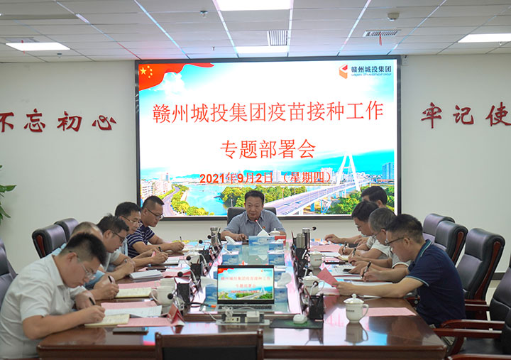 9月2日,贛州城投集團(tuán)黨委召開(kāi)疫苗接種工作專(zhuān)題部署會(huì),集團(tuán)黨委副書(shū)記黃家偉主持會(huì)議并講話,集團(tuán)在家的高管出席會(huì)議,集團(tuán)各部門(mén)、相關(guān)子公司負(fù)責(zé)人參加。