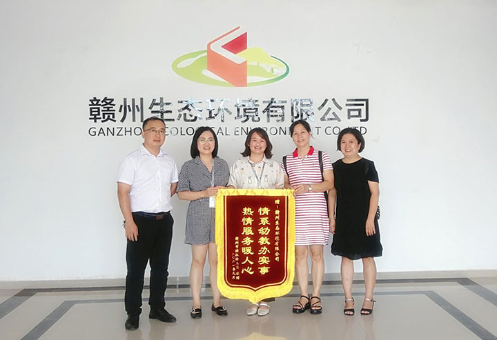 9月23日上午,贛州市濱江幼兒園園長及家長代表來到生態(tài)環(huán)境公司,為公司送來一面寫著“熱情服務暖人心,情系幼教辦實事”的感謝錦旗。