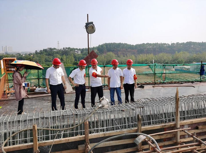 在蟠龍大橋項(xiàng)目,臨時(shí)黨支部與城投建工黨支部的黨員查看現(xiàn)場澆筑等工作情況,商量協(xié)調(diào)解決運(yùn)輸車輛等問題,確保項(xiàng)目上的混凝土澆筑施工循序推進(jìn)。