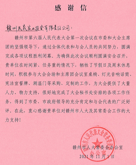 (民晟實(shí)業(yè)公司收到市人大、市政協(xié)的感謝信)