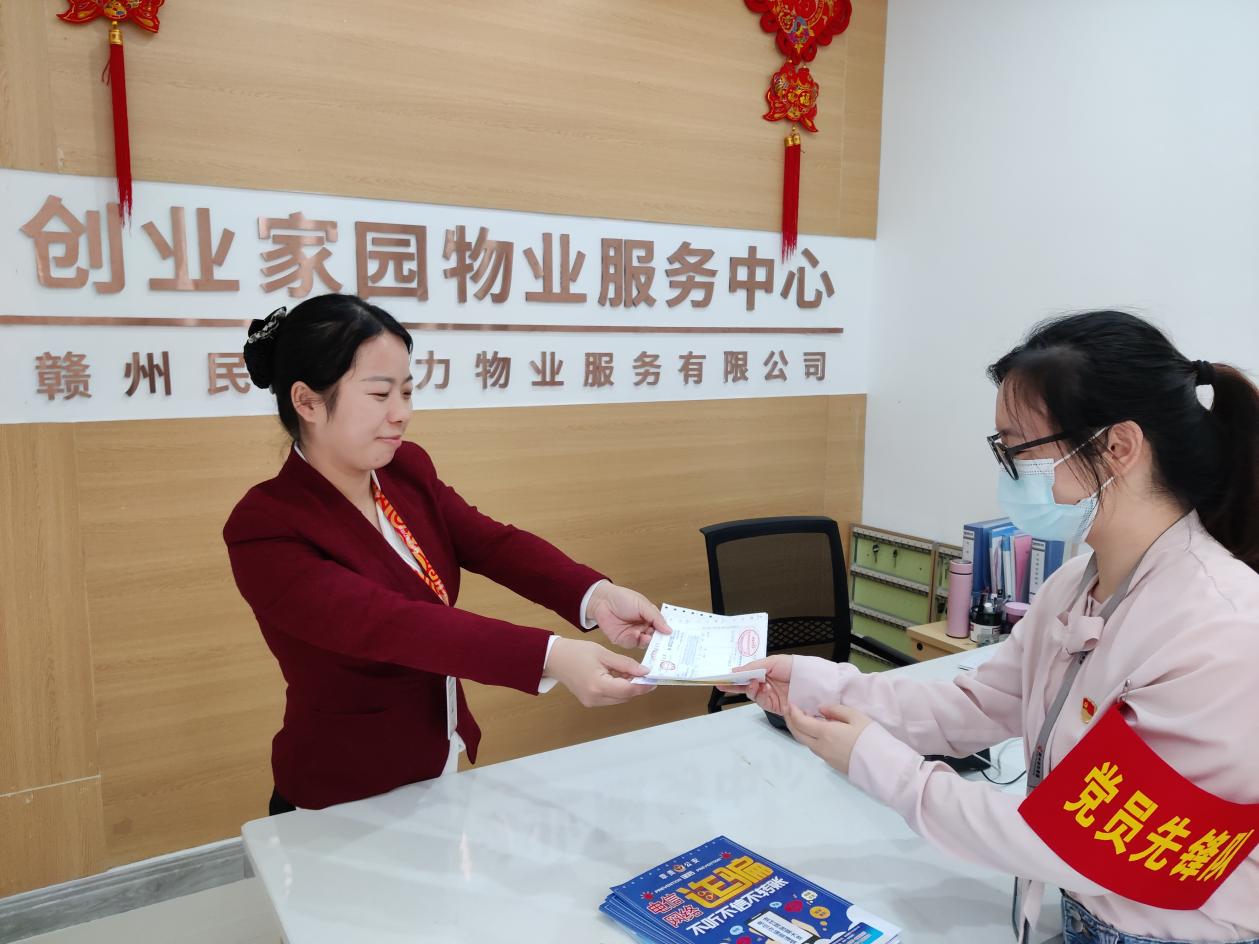 贛州城投集團(tuán)振興實(shí)業(yè)公司負(fù)責(zé)管理的創(chuàng)業(yè)家園人才住房和公租房承租戶有1200多戶。今年上半年,收到租戶反映,創(chuàng)業(yè)家園與集團(tuán)辦公地點(diǎn)不在一塊,承租戶上班時間與集團(tuán)辦公時間重疊,取票不方便,希望靈活安排領(lǐng)取發(fā)票、收據(jù)。同時,為加強(qiáng)疫情防控,減少人員流動,財(cái)務(wù)管理部黨支部、振興實(shí)業(yè)公司黨支部結(jié)合工作實(shí)際情況,采取多項(xiàng)舉措解決該問題,如,定時派黨員先鋒隊(duì)黨員同志駐點(diǎn)創(chuàng)業(yè)家園物業(yè)服務(wù)中心,并設(shè)立黨員服務(wù)窗口,服務(wù)承租戶現(xiàn)場開票并提供業(yè)務(wù)咨詢;按承租戶需求,將部分發(fā)票放至物業(yè)辦公室方便上班族能及時領(lǐng)取到發(fā)票收據(jù)。