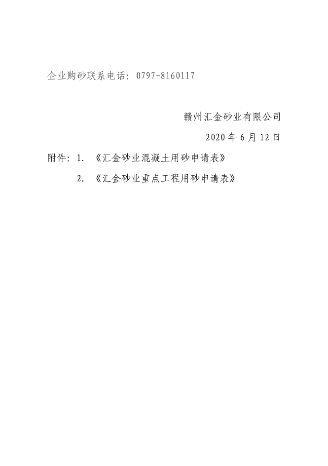 附件:1.《匯金砂業(yè)混凝土用砂申請表》 2.《匯金砂業(yè)重點項目用砂申請表》