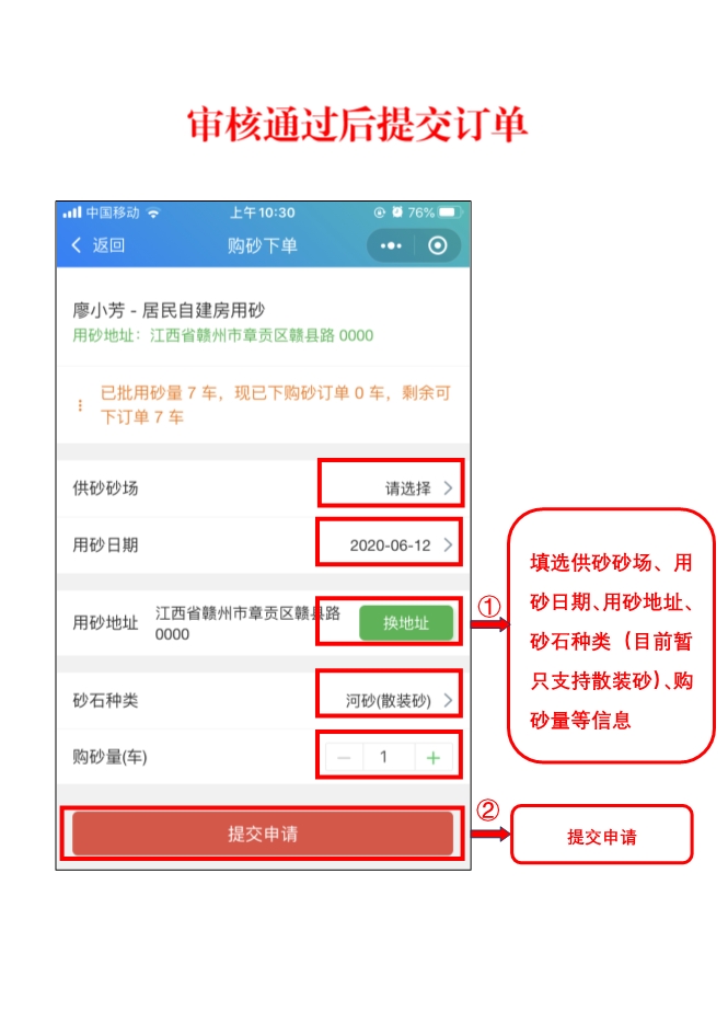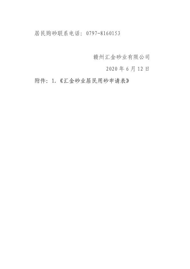 附件:1.《匯金砂業(yè)居民用砂申請表》