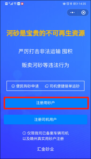3.選擇“注冊(cè)用砂戶” 第五步:企業(yè)下單 1. 選擇“袋裝砂” 2.選擇“購(gòu)砂申請(qǐng)”