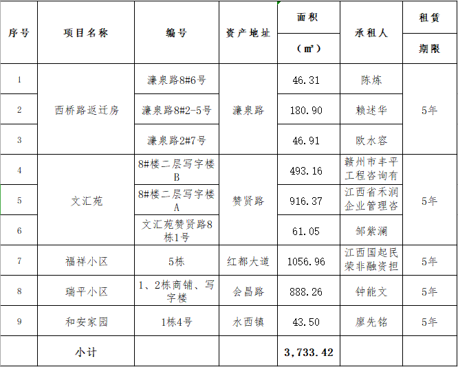 2021年5月28日上午10時,在贛州市公共資源交易中心舉行的贛州振興實(shí)業(yè)有限責(zé)任公司贊賢路等二十七宗資產(chǎn)公開招租(項(xiàng)目編號GZCQ2021072),現(xiàn)將公開招租成交情況公示如下: