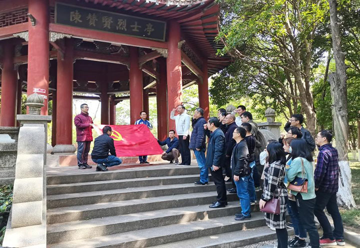 建筑設(shè)計院黨支部全體黨員來到八境公園陳贊賢烈士紀(jì)念亭,緬懷革命烈士事跡,重溫入黨誓詞,開展黨史學(xué)習(xí)教育。