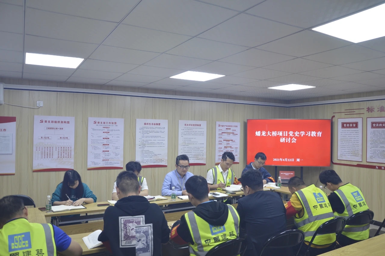 在蟠龍大橋項目,黨史學(xué)習(xí)教育活動已常態(tài)化開展。在辦公區(qū)、施工現(xiàn)場掛起了一抹抹醒目的黨史學(xué)習(xí)宣傳標(biāo)語,在黨員活動室走廊設(shè)置了黨史學(xué)習(xí)墻。在每月首個工作日,項目部組織全體黨員及項目人員組織升旗活動,并開展國旗下的黨史故事誦讀活動。同時,組織觀看微紀(jì)錄片《見證初心和使命的“十一書”》,重溫革命先烈的感人故事,感悟初心使命,弘揚(yáng)革命精神,為高質(zhì)量推動項目建設(shè)積極奮斗。