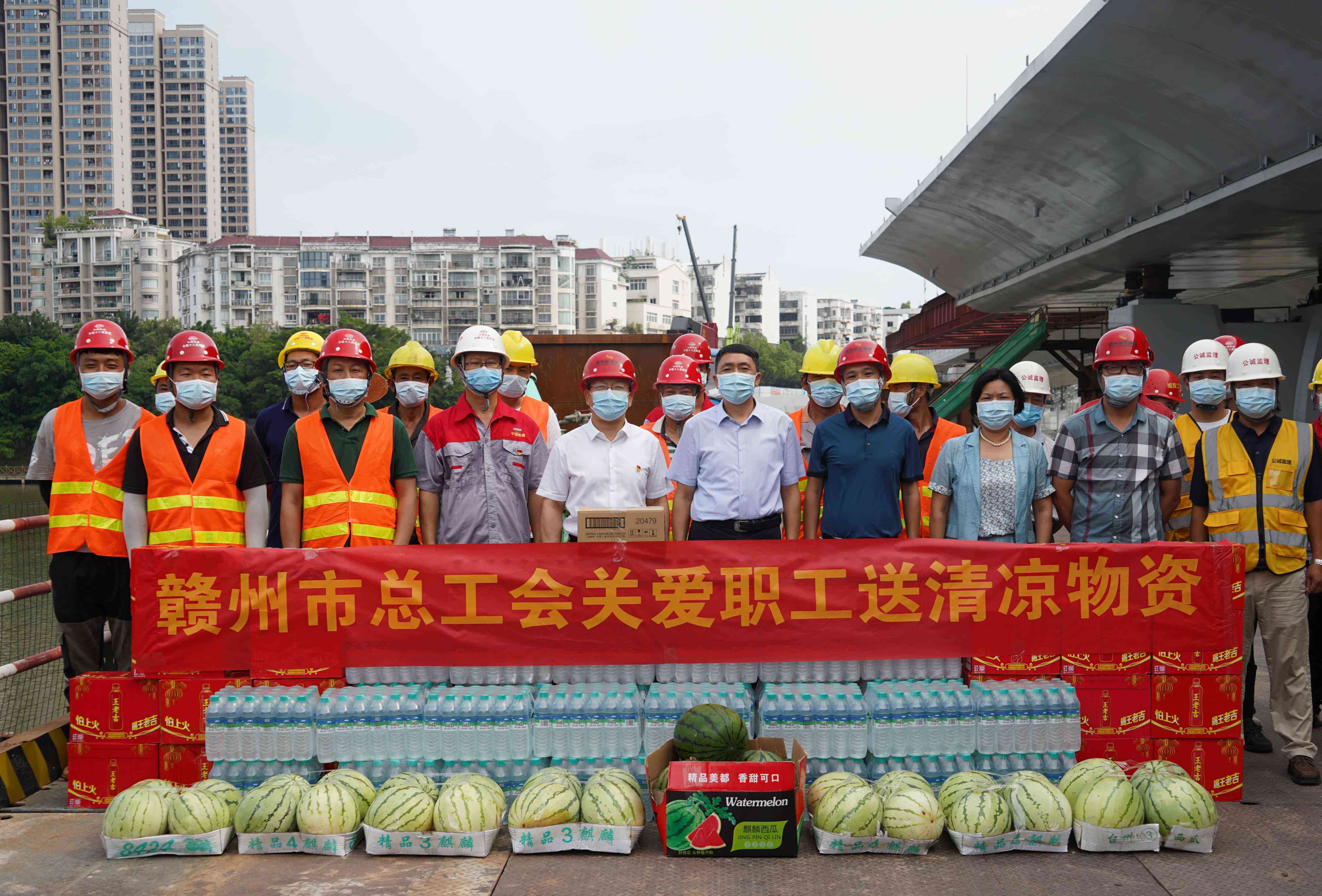 為鞏固解困脫困工作成果,提高職工生活品質(zhì),使高溫下作業(yè)的一線職工有更多的獲得感、幸福感、安全感,8月25日,贛州市總工會二級調(diào)研員賴定銘一行來到贛州城投集團南河大橋拓寬改造(二期)工程項目工地開展“關(guān)愛職工 夏送清涼”走訪慰問活動,送上市總工會的關(guān)懷。贛州城投集團黨委副書記黃家偉,工程管理公司相關(guān)負責(zé)人,集團工會、文化宣傳部、項目部業(yè)主、監(jiān)理和施工單位相關(guān)人員等參加慰問。