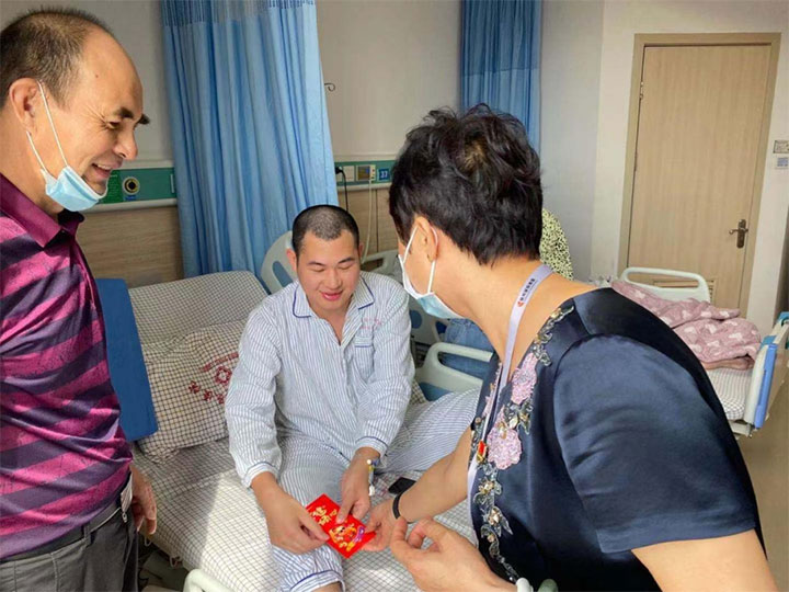 病房內(nèi),慰問小組詳細了解了職工家屬的病情及身體狀況,囑咐其安心養(yǎng)病,早日恢復(fù)健康。家屬對集團黨委表達了真摯的感謝,并表示,此次慰問讓他深切感受到了“城投大家庭”的溫暖,他一定會好好配合治療,爭取早日康復(fù)出院。